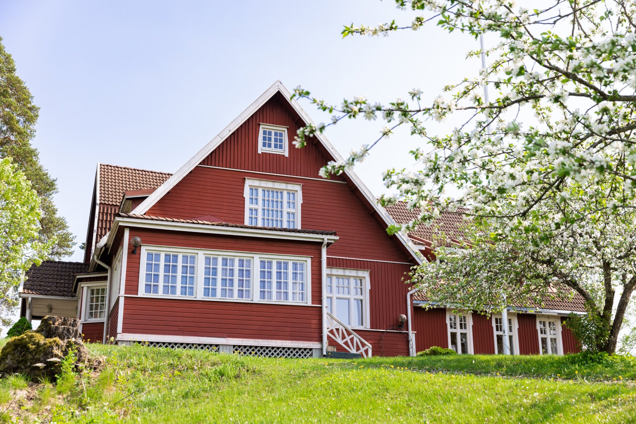 Verksamhetsledare Markku Nikola säger något överraskande, när vi beundrar utsikten, som öppnar sig från Hotelli Siuntios fönster. Framför för oss sluttar åkrarna, och på kullen mittemot höjer sig en rödmålad gammal villa.